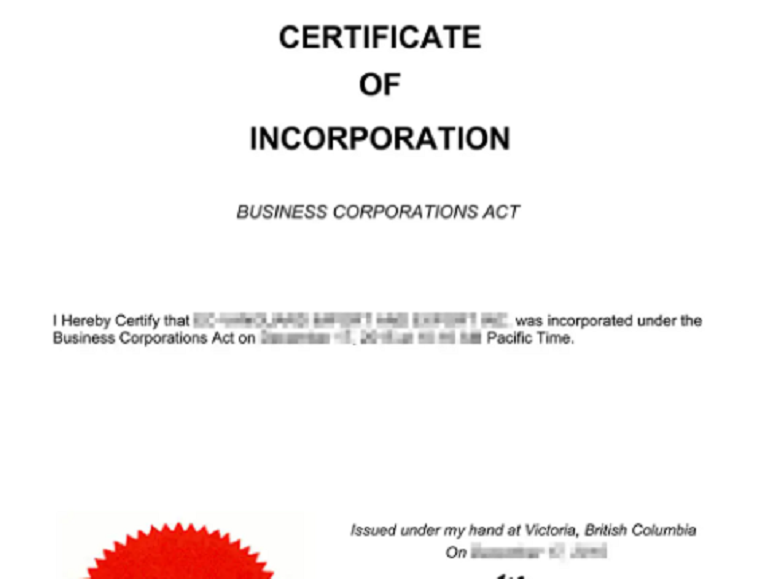 (加拿大公司注冊證書樣本)